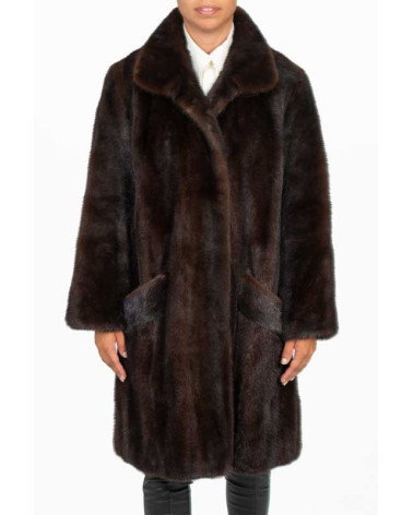REF. AB117 Abrigo de lomos de visón rasado, color marrón muy oscuro, casi negro Es nuevo, a estrenar Una prenda ligera, flexible, suave y de...