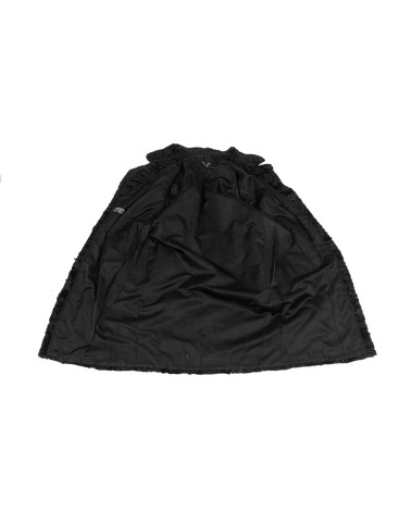 Debido al tiempo que la prenda pasa metida en una caja, mientras está en transito, llegará arrugada. NO LA PLANCHES, simplemente déjala colgada un par de días y el pelo volverá a su estado normal, sin hacer nada más.