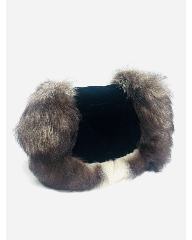 Confeccionado con piel de zorro plateado, muy codiciada, en sus bordes, y terciopelo negro en el centro