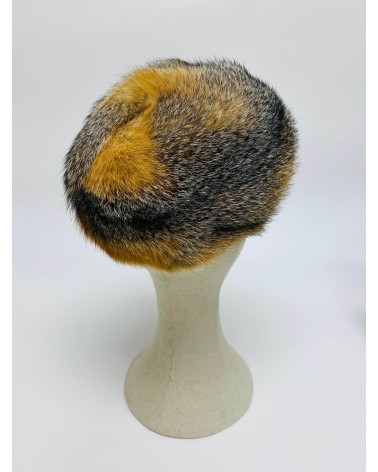 Gorro vintage de piel natural en los tonos propios del zorro de Virginia: anaranjados y marron oscuro con mechas mas claritas en un precioso contraste