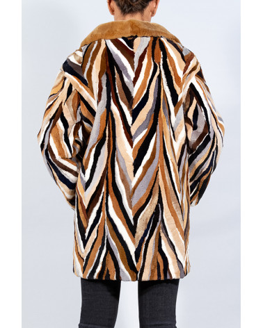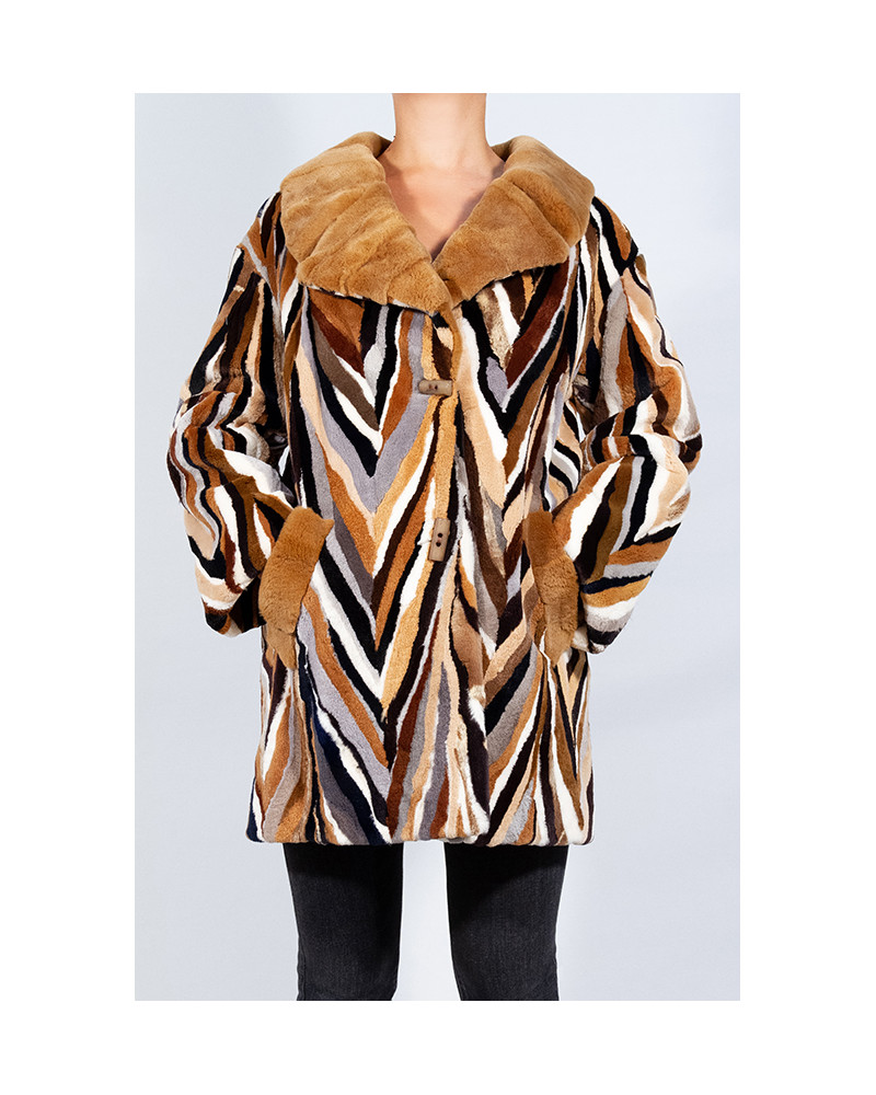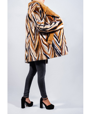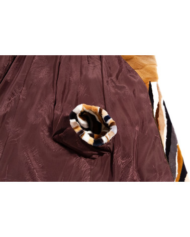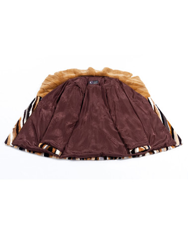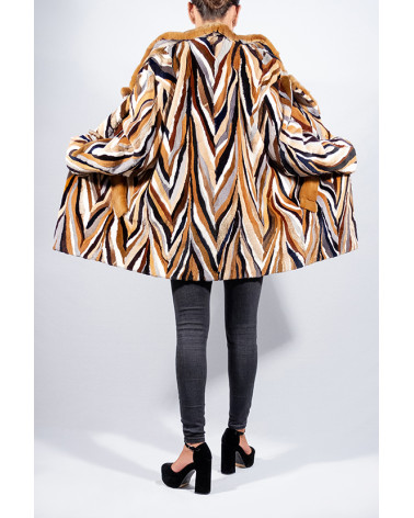 Abrigo de derivados (trozos) de visón rasado y estampado