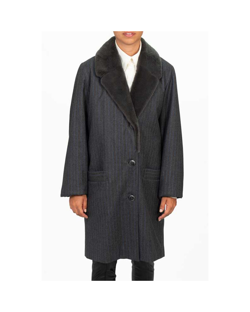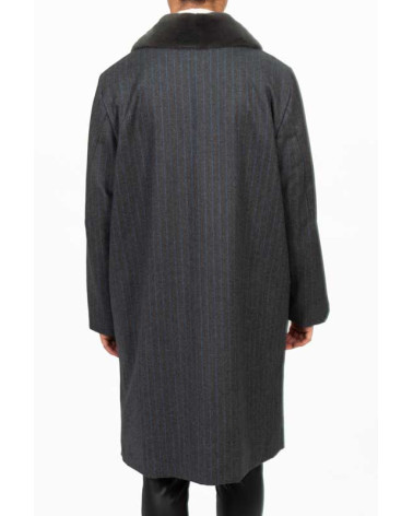 Abrigo de paño gris jaspeado con raya diplomatica en azul cónorgan