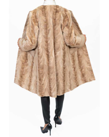 Debido al tiempo que la prenda pasa metida en una caja, mientras está en transito, llegará arrugada. NO LA PLANCHES, simplemente déjala colgada un par de días y el pelo volverá a su estado normal, sin hacer nada más.