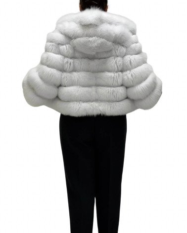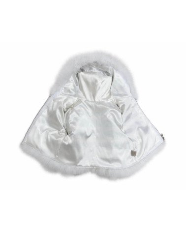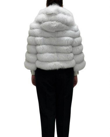 Chaquetón de lomos de zorro blanco tireado con cuero del mismo color y con capucha