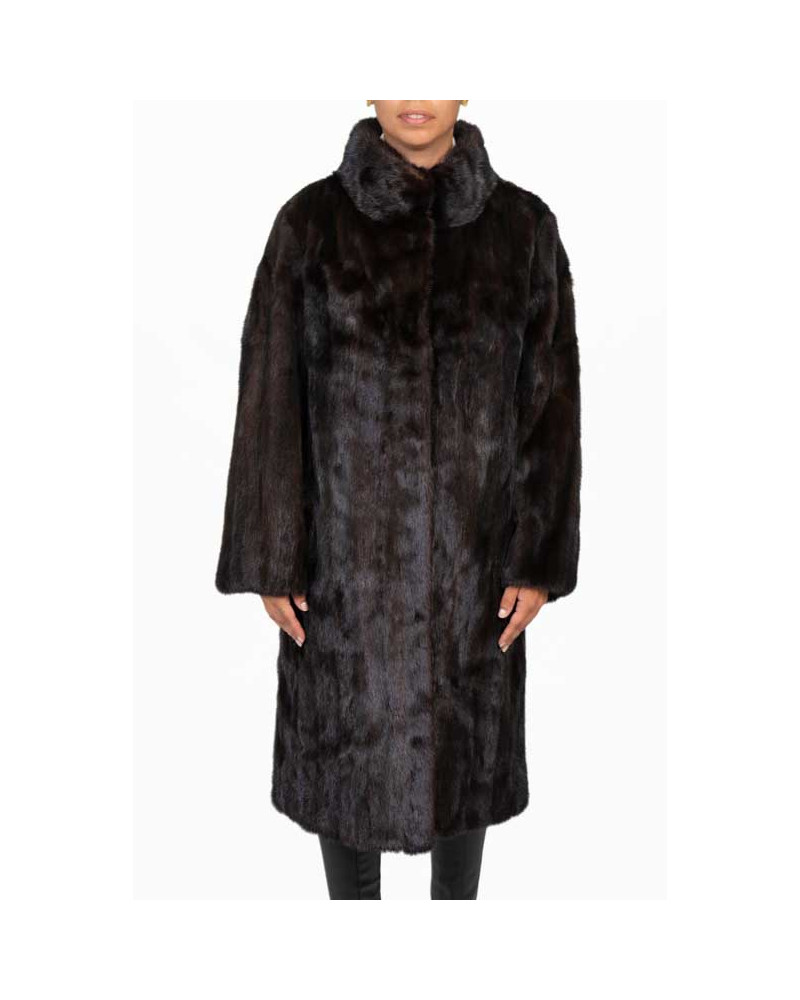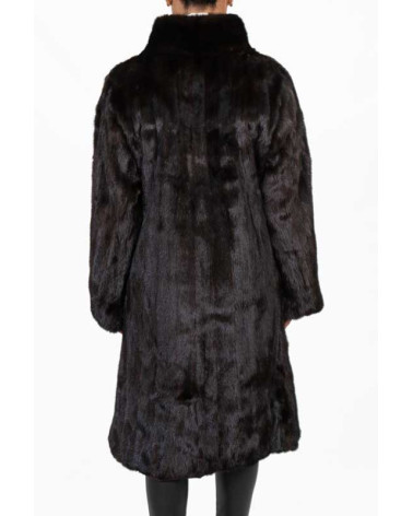 Abrigo de lomos de visón en vertical color marrón oscuro