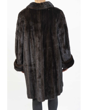 La manga es tipo pegada y termina en un borde doble de la misma piel