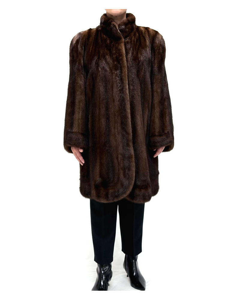 Abrigo de lomos de visón en vertical color marrón