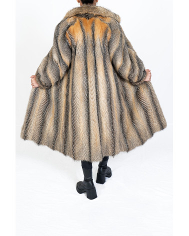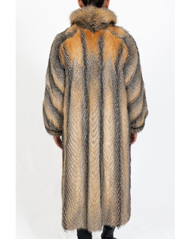 Debido al tiempo que la prenda pasa metida en una caja, mientras está en transito, llegará arrugada. NO LA PLANCHES, simplemente déjala colgada un par de días y el pelo volverá a su estado normal, sin hacer nada más.