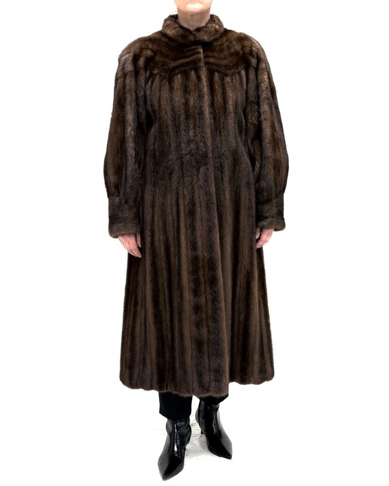 Abrigo de lomos de visón en vertical color marrón